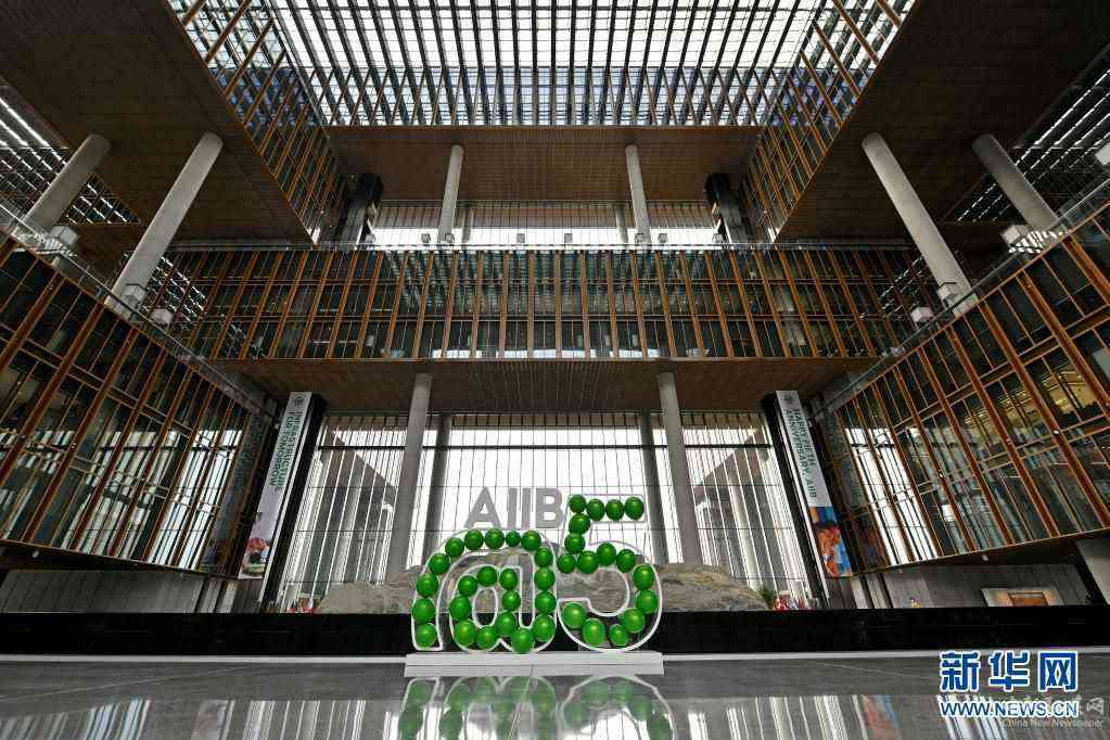 這是亞投行總部大樓內(nèi)景和慶祝正式開業(yè)五周年裝飾(2021年1月13日攝)。新華社記者 李鑫 攝