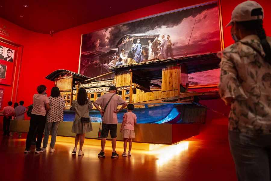 “紅船”展區(qū)吸引了許多參觀者駐足留影。(中國(guó)日?qǐng)?bào)記者 匡林華 攝)
