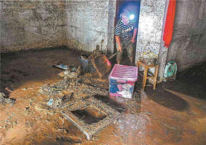?。冈?3日,受災群眾清除自家淤泥。黃士峰攝