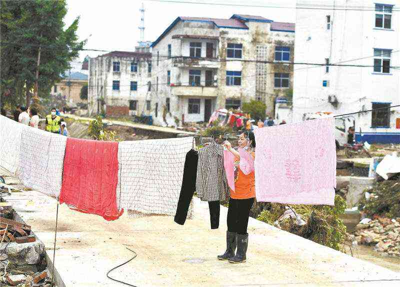 8月14日,受災群眾在晾曬衣被。黃士峰攝