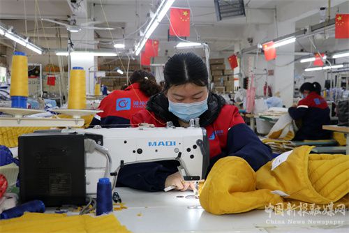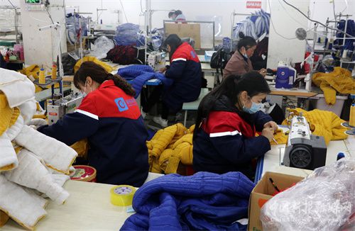 2022年3月25日,安徽省合肥市廬江縣龍橋鎮(zhèn)誠(chéng)裕制衣有限公司里,30多名農(nóng)村女職工正在趕制一批出口中東的睡衣訂單。據(jù)了解,在這里上班的女職工,每月薪酬可達(dá)4000-7000元。