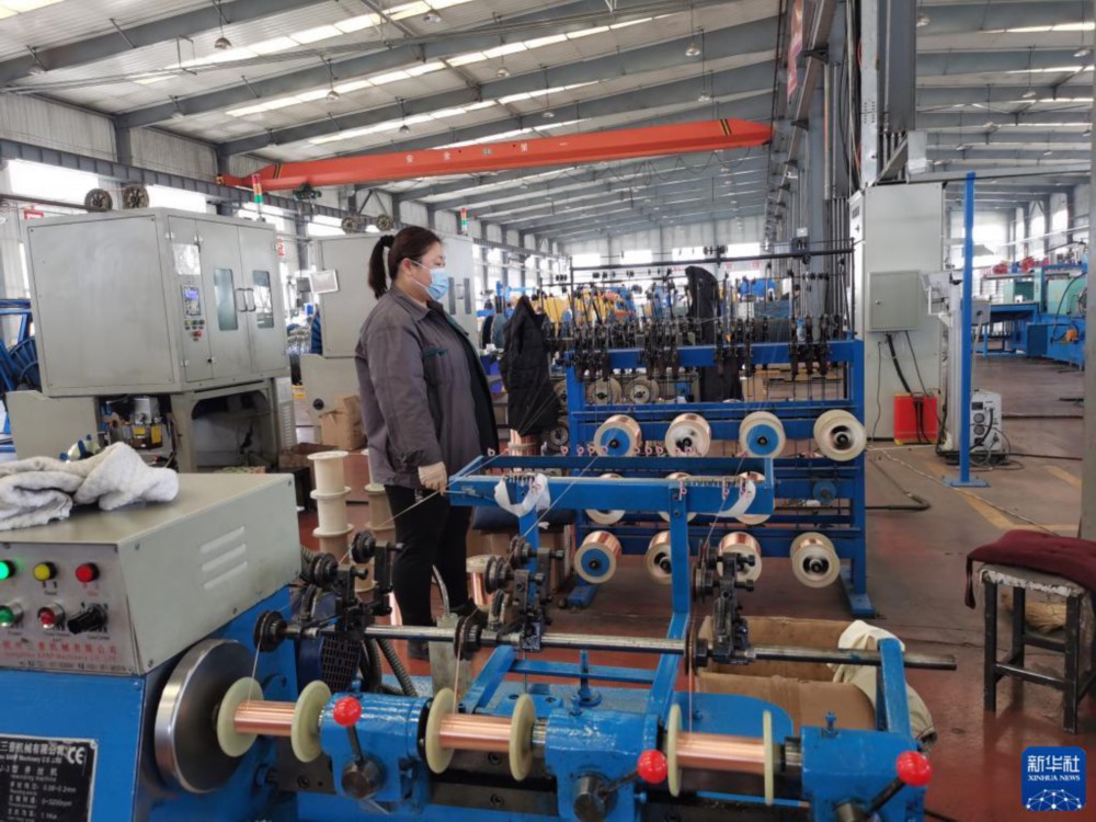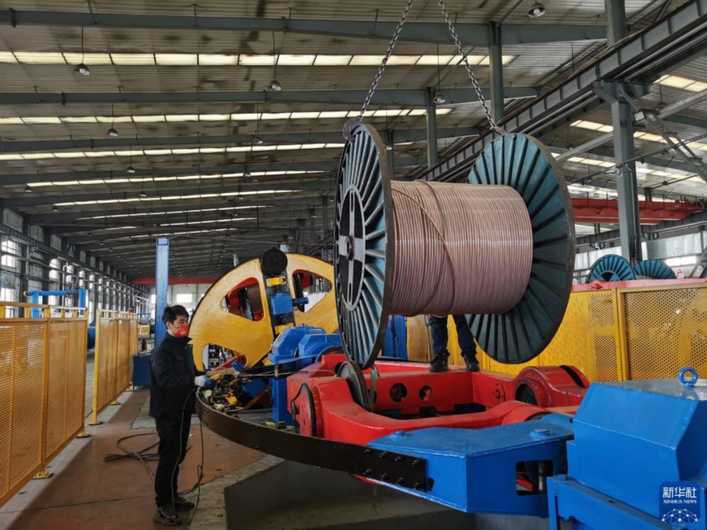 3月27日,在遼寧省鐵嶺市鐵嶺縣遼寧津達(dá)線纜有限公司,工人在生產(chǎn)電纜。