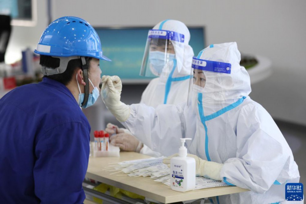 3月28日,工人在哈電集團(tuán)哈爾濱汽輪機(jī)廠有限責(zé)任公司接受核酸采樣。