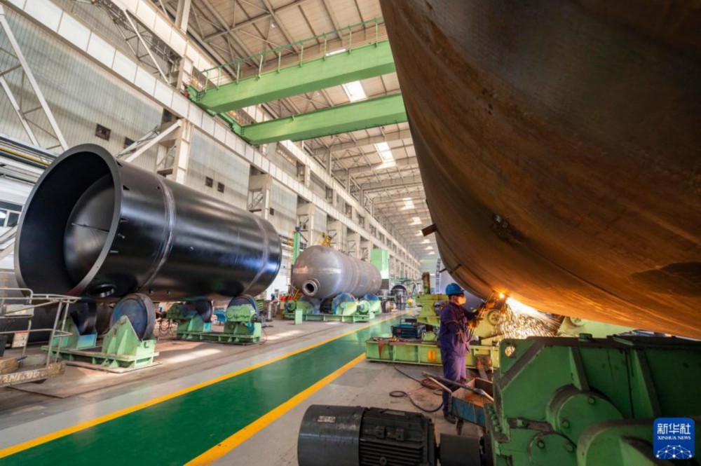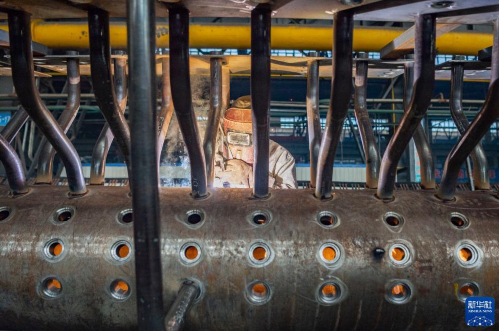 3月28日,工人在哈電集團(tuán)哈爾濱鍋爐廠有限責(zé)任公司生產(chǎn)車(chē)間內(nèi)作業(yè)。
