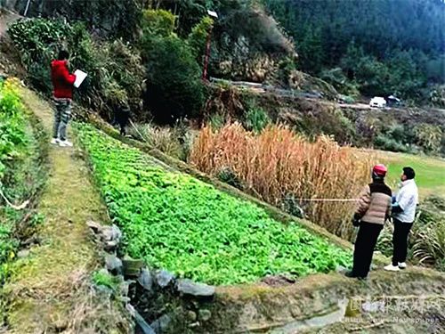 村兩委、工作隊實地調(diào)查摸底擬流轉(zhuǎn)土地。