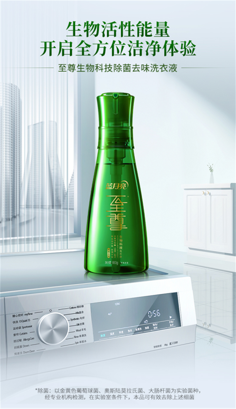 2018年,藍(lán)月亮升級(jí)研發(fā)出至尊生物科技洗衣液,創(chuàng)新采用“生物去漬”“抗污漬再沉積”“纖維整理”等洗滌科技,能有效預(yù)防衣服發(fā)黃、發(fā)灰變舊,養(yǎng)護(hù)衣物纖維保持光亮。
