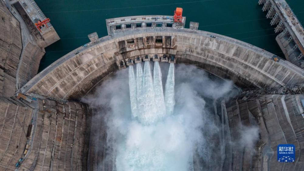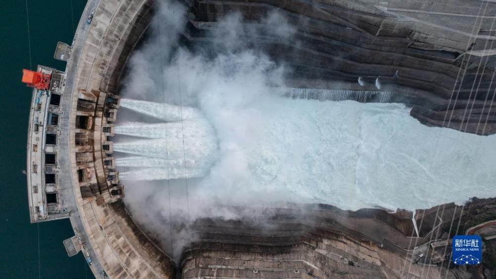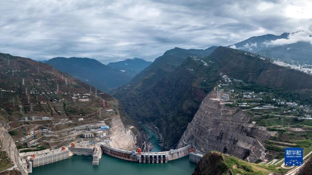 5月29日拍攝的白鶴灘水電站一景(無人機(jī)照片)。新華社記者 胡超 攝
