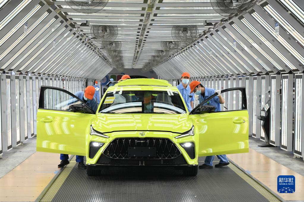 6月7日,上汽集團乘用車寧德基地總裝車間,新車有序下線。 新華社發(fā)(王旺旺攝)