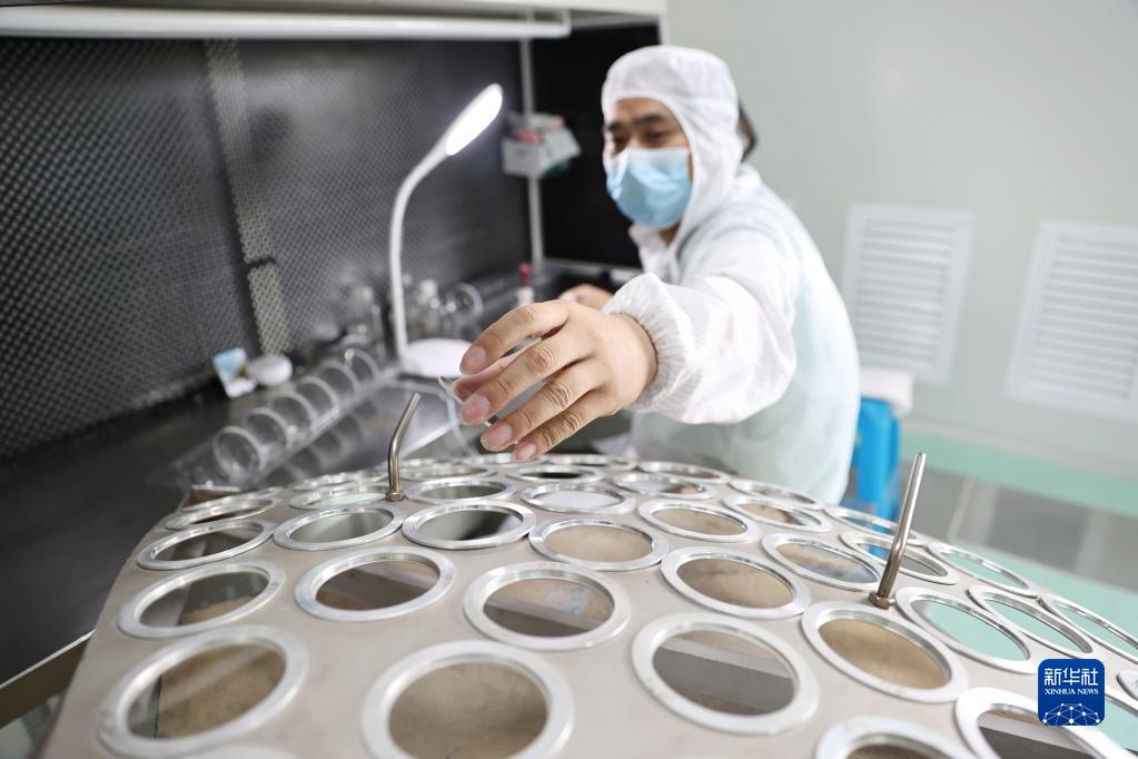 6月23日,江蘇如皋一家光電科技有限公司鏡片鍍膜車間內(nèi),工人們檢測天文望遠鏡鏡片?!⌒氯A社發(fā)(邱宇攝)