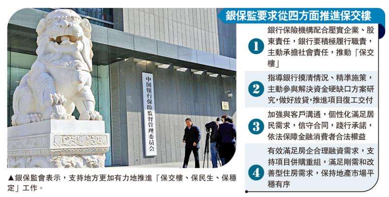 圖:銀保監(jiān)會(huì)表示,支持地方更加有力地推進(jìn)“保交樓、保民生、保穩(wěn)定”工作。