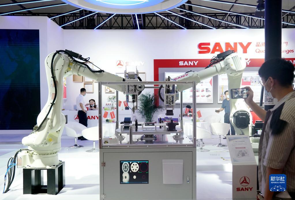這是8月18日在2022世界機(jī)器人博覽會(huì)上拍攝的工業(yè)機(jī)器人。新華社記者 張晨霖 攝