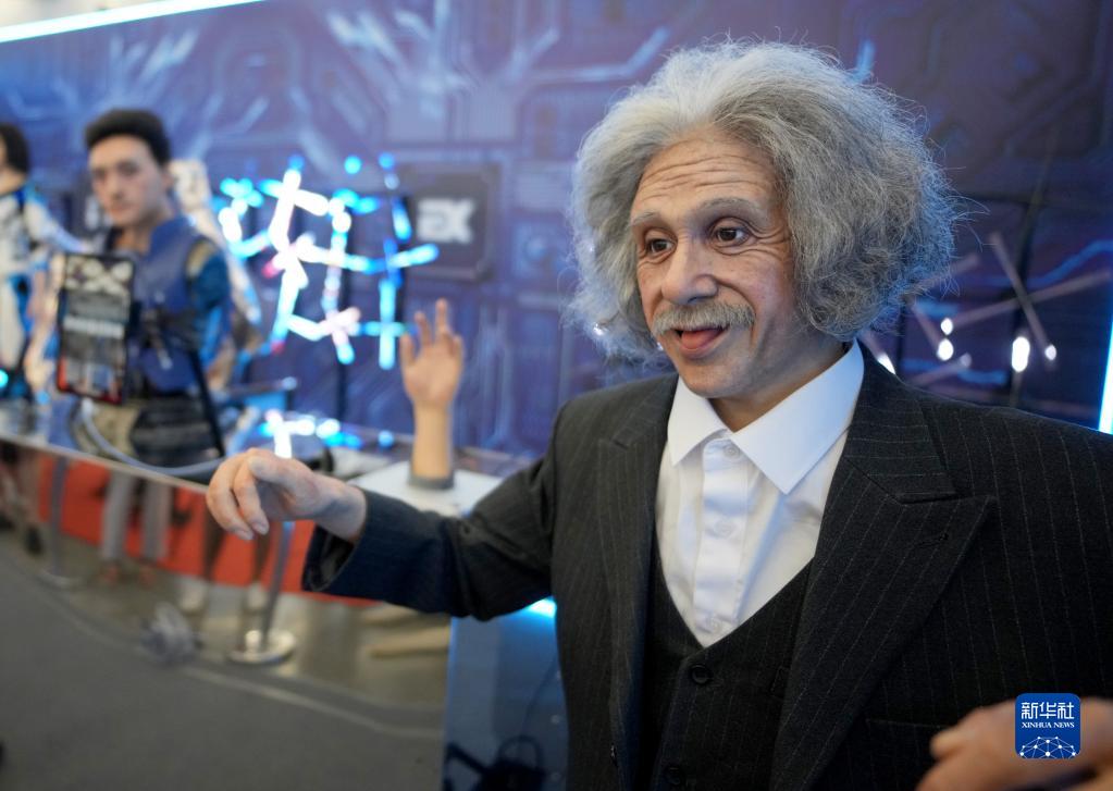 8月18日,愛因斯坦仿生人形機(jī)器人在進(jìn)行表演。新華社記者 王毓國 攝