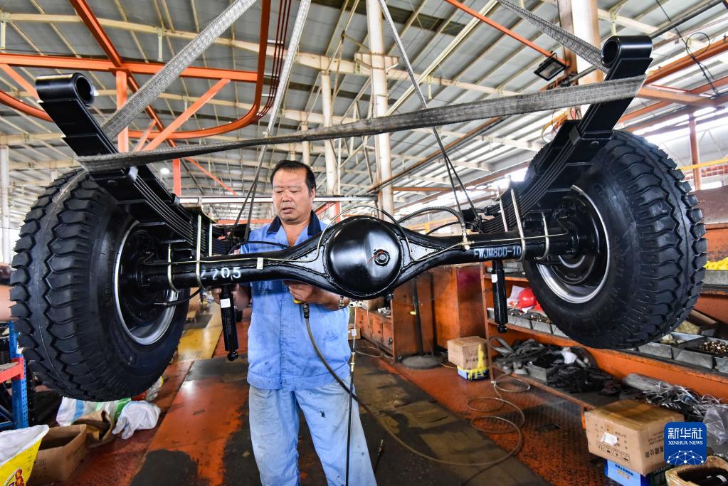 8月31日,在山東省青州市經(jīng)濟(jì)開發(fā)區(qū),一家農(nóng)用車制造企業(yè)的工人在車間內(nèi)忙碌。