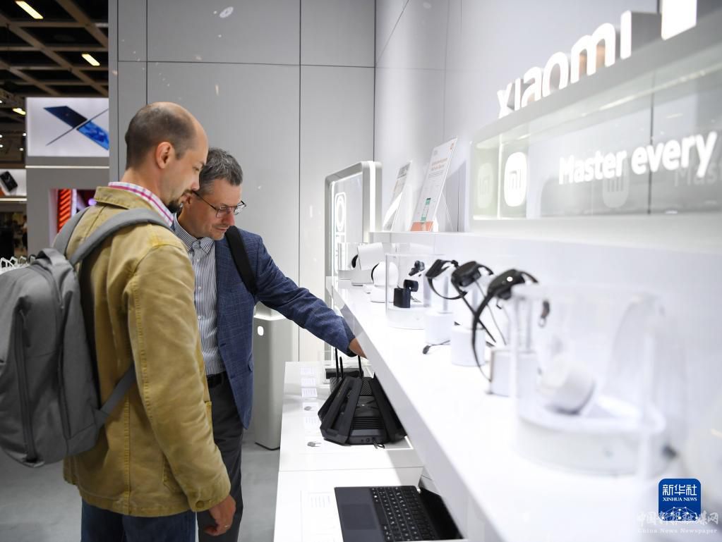 9月2日,在德國(guó)柏林國(guó)際消費(fèi)電子展上,參觀者在小米展區(qū)了解產(chǎn)品。