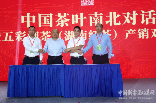 對(duì)接會(huì)上中國茶葉流通協(xié)會(huì)副會(huì)長姚靜波,上??墒锉狈讲枞~貿(mào)易有限公司董事長徐雨楠,福建三農(nóng)大地科技服務(wù)有限公司董事長陳登元,湖北龍行清江農(nóng)業(yè)科技發(fā)展股份有限公司董事長胡東亞,江華瑤族自治縣人大副主任﹑縣茶葉領(lǐng)導(dǎo)小組常務(wù)副組長黎明柳,湖南省茶葉技術(shù)體系首席專家包小村,湖南省茶業(yè)集團(tuán)股份有限公司副董事長、總工程師吳浩人,安化縣晉豐厚茶行有限公司總經(jīng)理諶超美八位嘉賓分別從各個(gè)層面對(duì)如何促進(jìn)南北產(chǎn)銷對(duì)接、合作共贏的途徑進(jìn)行深入探討、交流。對(duì)接會(huì)上來自主銷區(qū)的3家經(jīng)銷商代表與湖南省茶業(yè)協(xié)會(huì)簽訂五彩湘茶(湖南紅茶)集中采購合作意向協(xié)議,總金額超過2億元。