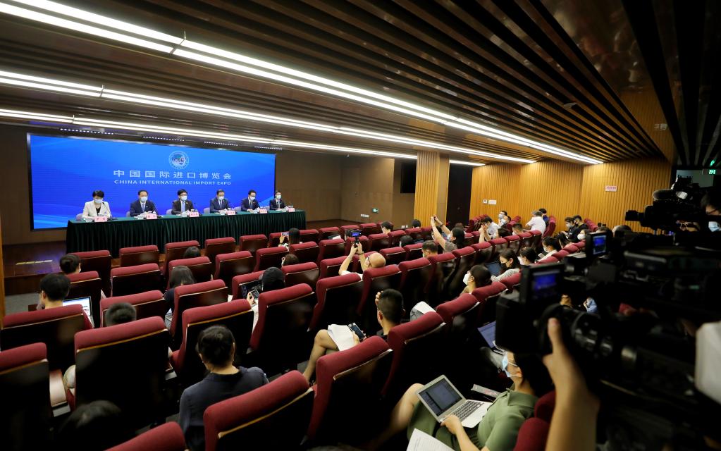 第五屆中國國際進(jìn)口博覽會開幕倒計時100天新聞通氣會在上海市政府新聞發(fā)布廳舉行(2022年7月27日攝)。新華社記者 方喆 攝