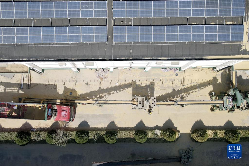 10月13日,在中央儲備糧合肥直屬庫有限公司本部,稻谷被傳送帶轉(zhuǎn)運至倉房內(nèi)(無人機照片)。