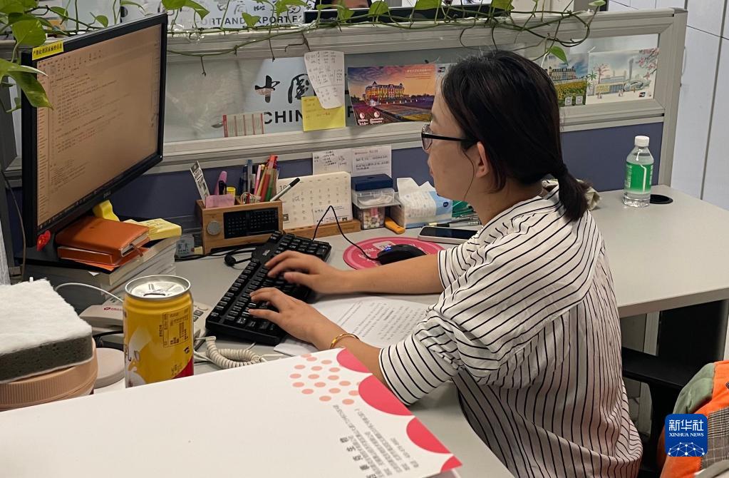 10月20日,在中國對外貿(mào)易中心信息化部數(shù)據(jù)資源科的辦公室,數(shù)據(jù)分析員在電腦前輸入程序代碼,實時抓取線上平臺數(shù)據(jù)。新華社記者 馬曉澄 攝