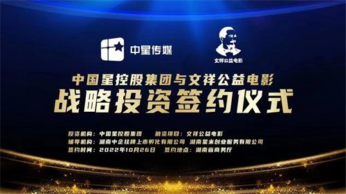 中國星控股集團與文祥公益電影達成戰(zhàn)略投資合作