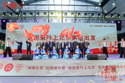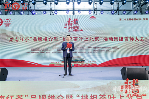 10月28日,由湖南省供銷合作總社、湖南省商務(wù)廳、湖南省文化和旅游廳、湖南省鄉(xiāng)村振興局、湖南省貿(mào)易促進(jìn)委員會(huì)、湖南省工商業(yè)聯(lián)合會(huì)主辦的第二十三屆中國(guó)中部(湖南)農(nóng)業(yè)博覽會(huì)“湖南紅茶”品牌推介暨“挑擔(dān)茶葉上北京”活動(dòng)集結(jié)誓師大會(huì)隆重舉行。省政協(xié)副主席易鵬飛、省政協(xié)原副主席武吉海、省人大財(cái)經(jīng)委主任張亦賢、省人大農(nóng)業(yè)農(nóng)村委主任余雄、省農(nóng)業(yè)農(nóng)村廳副廳長(zhǎng)馬艷青、省供銷合作總社副主任楊利凱、省鄉(xiāng)村振興局副局長(zhǎng)黎仁寅、省貿(mào)促會(huì)副會(huì)長(zhǎng)、湖南國(guó)際商會(huì)副會(huì)長(zhǎng)伍登國(guó)等出席本次大會(huì)。省農(nóng)業(yè)農(nóng)村廳黨組成員、副廳長(zhǎng)馬艷青在“湖南紅茶”推介會(huì)上致辭,省供銷合作總社黨組成員、理事會(huì)副主任楊利凱代表“挑擔(dān)茶葉上北京”活動(dòng)牽頭主辦單位致詞,武吉海為“挑擔(dān)茶葉上北京”活動(dòng)集結(jié)誓師大會(huì)授旗。