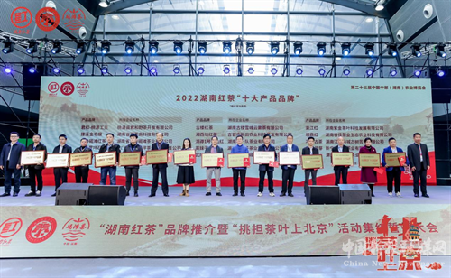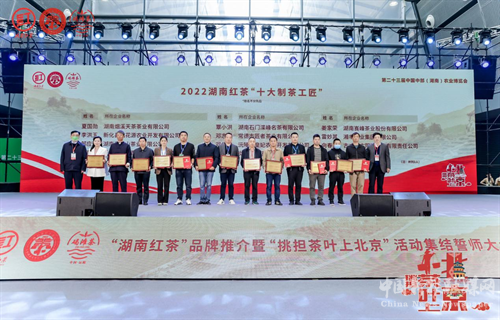 “湖南紅茶”推介會(huì)上還舉行了2022湖南紅茶“十大制茶工匠”、 2022湖南紅茶“十大產(chǎn)品品牌”頒獎(jiǎng)儀式以及第五批“湖南紅茶”商標(biāo)使用企業(yè)授牌儀式。