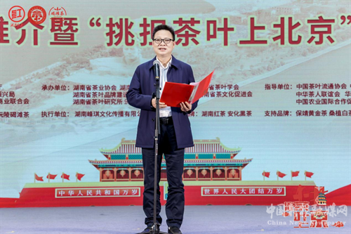 接下來(lái),是湖南省供銷合作總社黨組成員、理事會(huì)副主任楊利凱代表“挑擔(dān)茶葉上北京—五彩湘茶大型宣傳推介活動(dòng)”牽頭主辦方在“挑擔(dān)茶葉上北京”活動(dòng)集結(jié)誓師大會(huì)上致詞講話。他表示,聯(lián)合舉辦“挑擔(dān)茶葉上北京”集結(jié)誓師大會(huì),是深入貫徹落實(shí)習(xí)近平總書記重要指示精神和省委省政府決策部署的具體行動(dòng),以期通過(guò)持續(xù)的創(chuàng)新宣傳、營(yíng)銷方式,努力打造湘茶品牌、迅速提升“五彩湘茶”品牌集群影響力、拓展擴(kuò)大湘茶消費(fèi)市場(chǎng),加快“五彩湘茶”產(chǎn)業(yè)集群建設(shè),努力構(gòu)建產(chǎn)業(yè)支撐極,促進(jìn)千億湘茶高質(zhì)量發(fā)展。