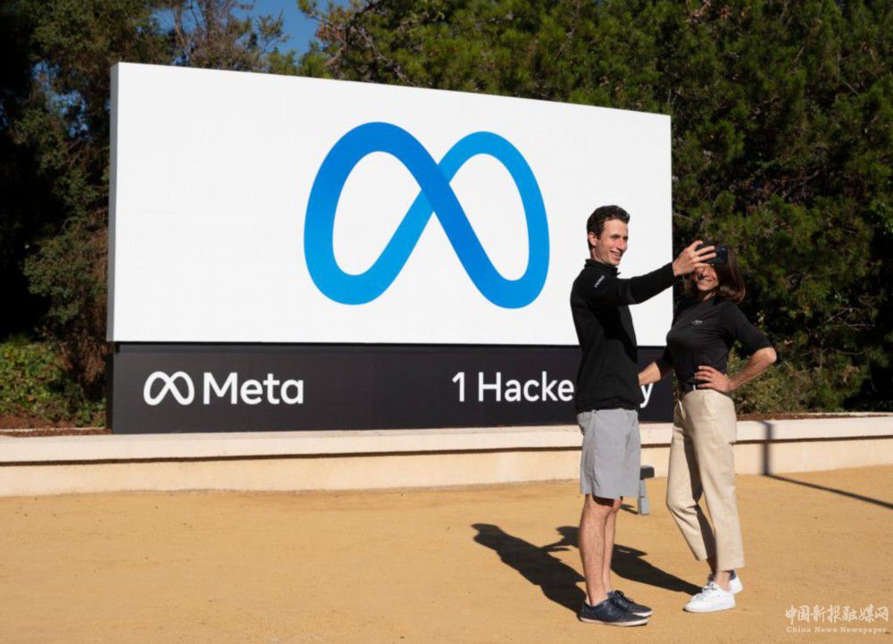2021年10月28日,在美國(guó)舊金山灣區(qū),人們?cè)?ldquo;元”標(biāo)志牌前留影。新華社發(fā)(李建國(guó)攝)