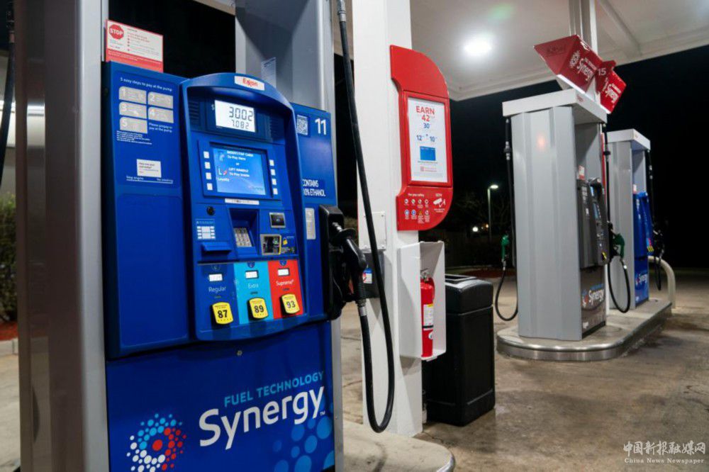 這是2022年3月31日在美國(guó)弗吉尼亞州阿靈頓拍攝的一處加油站。(新華社記者劉杰攝)