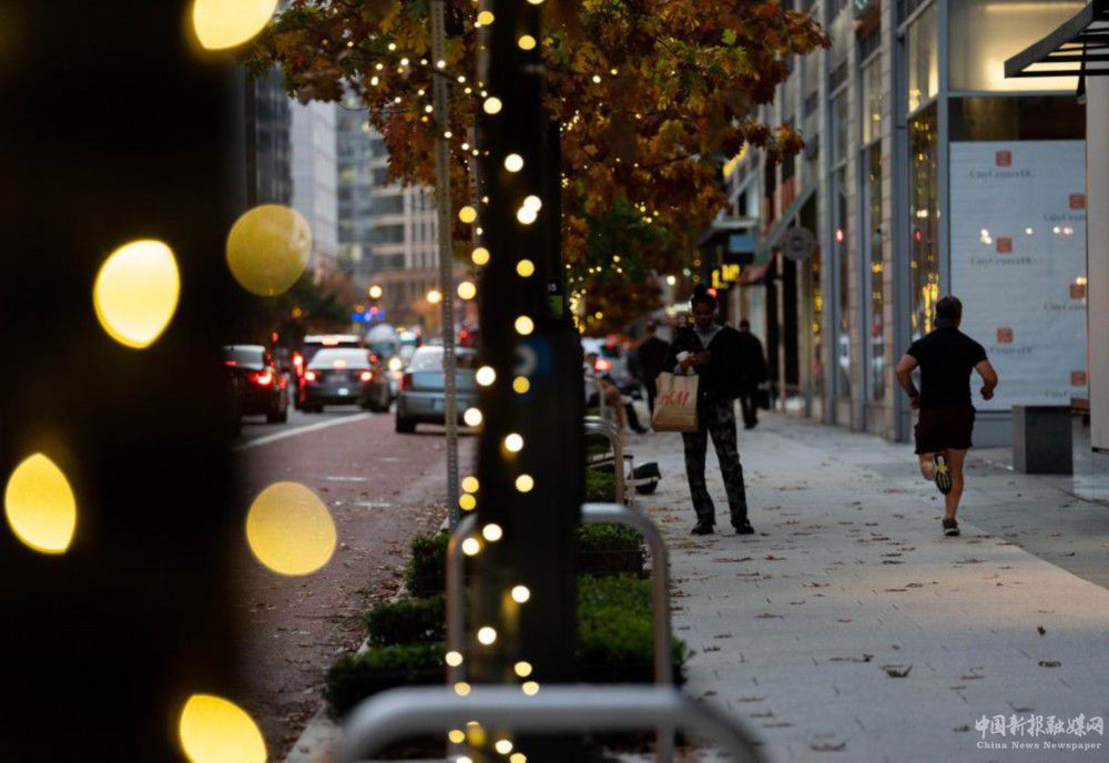 2022年11月4日,在美國(guó)首都華盛頓,行人走在一處商業(yè)街區(qū)。(新華社記者劉杰攝)