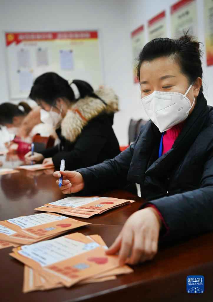 1月7日,西安市未央?yún)^(qū)一社區(qū)工作人員在填寫“疫情防控明白卡”。