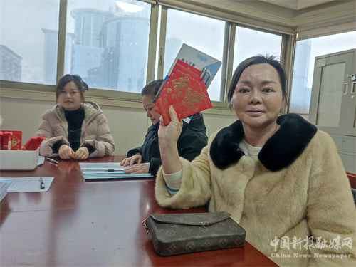 業(yè)主陳曉秋拿著自己和幫鄰居代領(lǐng)的紅包很高興