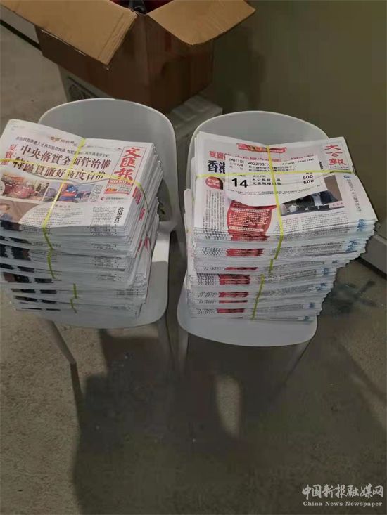 10日早上6時30分,疊放得整整齊齊的3000份《大公報》、香港《文匯報》,已分別送至青衣、新田兩個方艙醫(yī)院,由醫(yī)院指揮中心交予具體負(fù)責(zé)人接收。這些報紙將分發(fā)給方艙醫(yī)院的隔離人士閱讀。