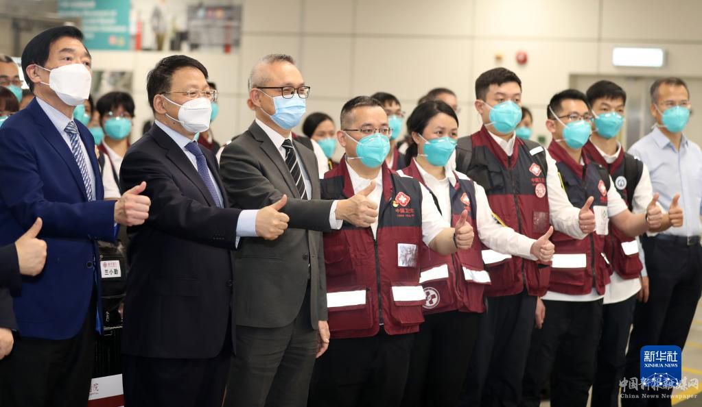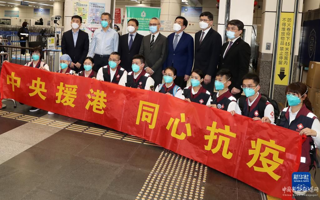 新華社香港3月14日電(記者查文曄)應(yīng)香港特區(qū)政府請求,由廣東省組派的內(nèi)地援港醫(yī)療隊共75人,14日傍晚經(jīng)深圳灣口岸抵達(dá)香港。香港中聯(lián)辦副主任尹宗華、香港特區(qū)政府食物及衛(wèi)生局副局長徐德義等有關(guān)負(fù)責(zé)人到深圳灣口岸迎接醫(yī)療隊的到來。