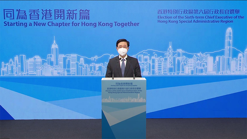 李家超宣布參加香港特別行政區(qū)第六屆行政長(zhǎng)官選舉。(直播圖片)