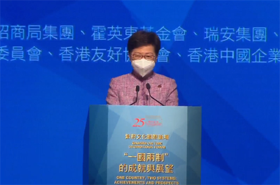 由紫荊文化集團(tuán)主辦的“紫荊文化國際論壇——‘一國兩制’的成就與展望”今日(16日)舉行,行政長官林鄭月娥出席論壇并致辭。她回顧其任內(nèi)的成就,指香港已進(jìn)入穩(wěn)定、繁榮及充滿機(jī)遇的新時代。林鄭月娥表示,自己即將卸任,相信香港未來在政治上將更穩(wěn)定,在國家的大力支持下,香港的經(jīng)濟(jì)未來將更穩(wěn)固。