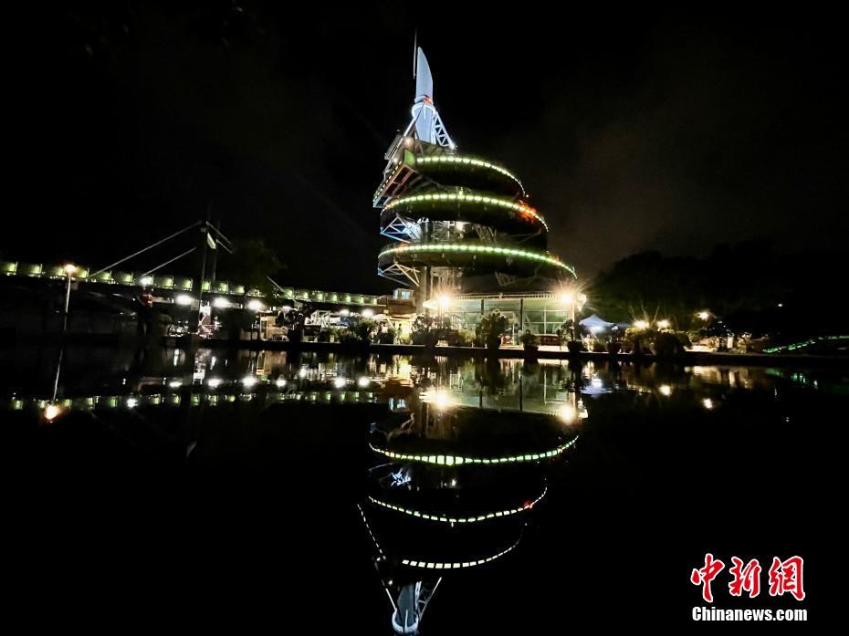 7月3日晚上,為慶祝香港回歸25周年,香港大埔區(qū)以大埔傳統(tǒng)文化及地區(qū)特色為主題,在大埔海濱公園回歸塔附近,舉行海、陸、空匯演,以200架無人機(jī)表演、25艘林村河彩燈船巡游及回歸塔燈飾共賀香港回歸祖國25周年。圖為大埔回歸塔亮起的燈飾。 中新社記者 李志華 攝