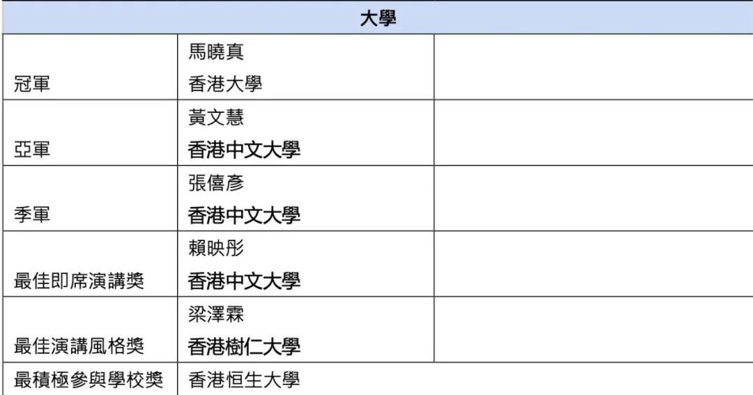 第五屆“21世紀(jì)杯”全國英語演講比賽(香港賽區(qū))獲獎(jiǎng)名單如下: