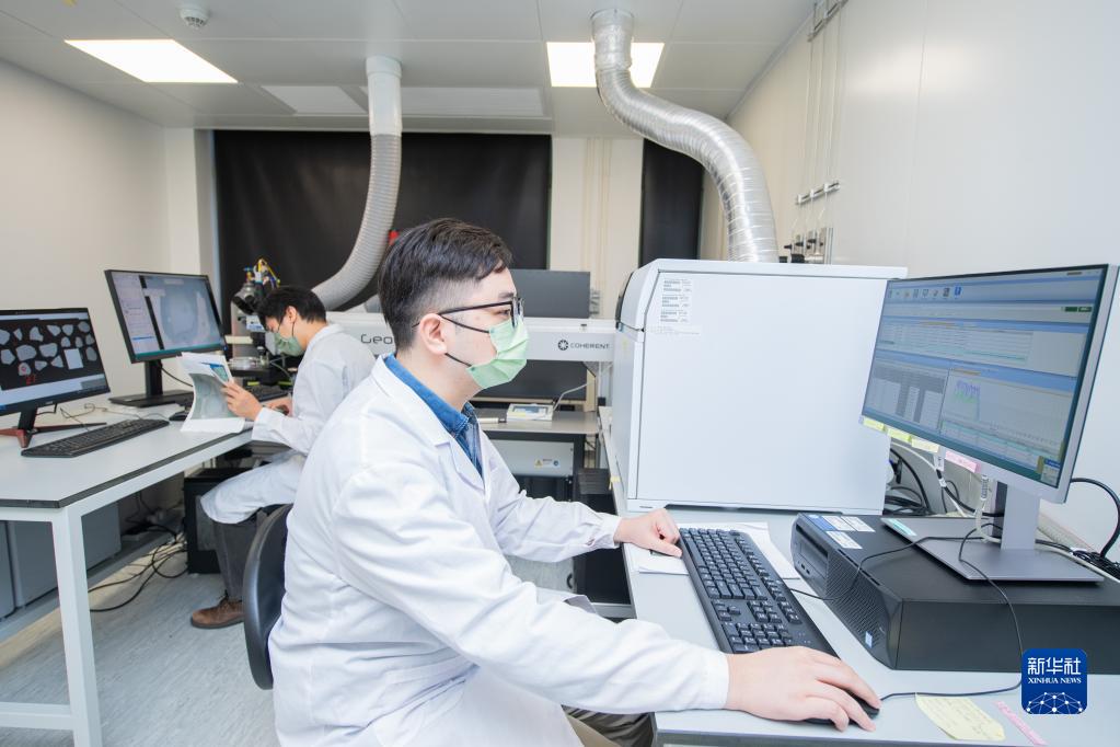 10月6日,澳門科技大學(xué)月球與行星科學(xué)國家重點(diǎn)實(shí)驗(yàn)室博士生梁柏健在實(shí)驗(yàn)室工作。新華社記者 張金加 攝