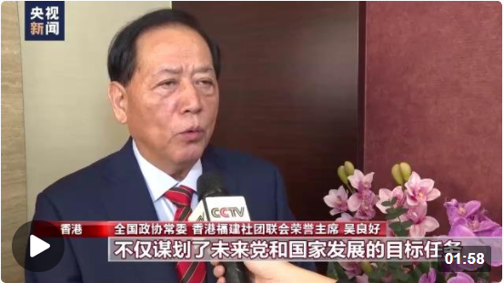 全國(guó)政協(xié)常委 香港福建社團(tuán)聯(lián)會(huì)榮譽(yù)主席 吳良好:習(xí)近平總書(shū)記的報(bào)告不僅謀劃了未來(lái)黨和國(guó)家發(fā)展的目標(biāo)任務(wù)和大政方針,提出一系列新思路、新戰(zhàn)略、新舉措,而且心系香港,為“一國(guó)兩制”事業(yè)進(jìn)一步發(fā)展指明了方向。