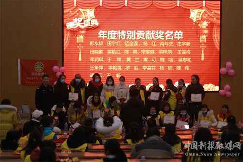 年度感恩會在一段《感恩的心》手舞表演中拉開了序幕。主持人代表長沙縣愛的擺渡人義工發(fā)展中心感謝所有長期以來給予支持的企業(yè)單位和愛心志愿者。隨后,機構(gòu)負責人張金花女士致歡迎辭;肖一女士公示了機構(gòu)年度財務(wù)報告。緊接著,特邀嘉賓們?yōu)槟甓葠坌暮献鲉挝弧坌闹С謫挝?、年度杰出貢獻理事、年度特別貢獻義工及年度優(yōu)秀大小義工進行了現(xiàn)場頒獎,引爆了全場。頒獎過程中穿插著志愿者們自編自演的快板、朗誦等各種精彩文藝節(jié)目也贏得了大家的陣陣掌聲。