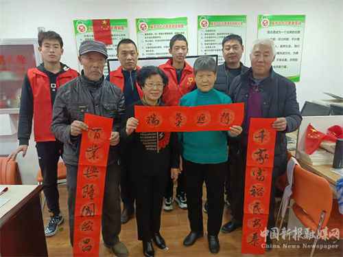 書法老師飽蘸濃墨、揮毫潑灑,現場翰墨飄香,以不同的筆法來書寫春聯(lián)和福字敬贈殘疾人和退伍軍人以及社區(qū)居民。一幅幅高雅飄逸的書法作品充滿喜慶、吉祥和祝福。100多幅帶著墨香的春聯(lián)鋪陳在桌面上,紅艷艷的,充滿了節(jié)日的問候。在場的志愿者和問訊趕來的社區(qū)居民都贊不絕口,現場一片祥和氣氛。