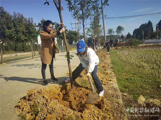 整個過程井然有序,大家雖然辛苦,但是看著自己親手栽種的樹苗,臉上都洋溢著快樂的笑容。經(jīng)過大家的配合協(xié)作,機耕道兩邊200余棵桂花樹苗迎風(fēng)挺立,為美麗鄉(xiāng)村又增添了一抹綠意。