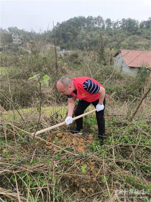 到達(dá)植樹現(xiàn)場,經(jīng)開區(qū)主任、書記率先垂范,大家齊心協(xié)力、揮鍬鏟土、扶苗填坑、踏土夯苗、水車澆水,他們?nèi)齻€一群,五個一伙,爭先恐后,有分工有合作,義務(wù)植樹現(xiàn)場一派熱火朝天的繁忙景象。經(jīng)過兩小時的奮戰(zhàn),50棵桂花樹、150棵桃樹李樹便成了天心橋村里的一道亮麗風(fēng)景。看著一棵棵迎風(fēng)挺立的樹苗,天心橋村群眾對參與活動的人員豎起大拇指說:今天的活動不僅僅是為咱們天心橋村種下了樹木,也是種下了天心橋村群眾對脫貧致富、對美好生活的信心和希望!