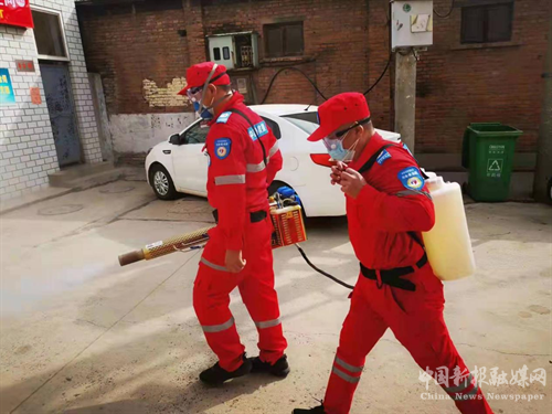 在龍泉小區(qū)還活躍著另一支隊伍,為民服務(wù),安全第一,積極消殺,不留死角。他們是中華志愿者協(xié)會應(yīng)急救援委員會滄州救援隊。中華志愿者協(xié)會應(yīng)急救援委員會滄州救援隊組織起有趙祥亮、王登攀、朱振杰、吳勝強、付華等隊員的先鋒隊,對站西社區(qū)內(nèi)的生活小區(qū)進行全面消殺,他們逆流而上,不顧個人安危,沖鋒在前,舍小家顧大家,寒風刺骨無阻,堅持每天帶著沉重的消殺設(shè)備,穿梭在社區(qū)之間,積極投入到疫情防控消殺的各項工作中,為打贏滄州疫情防控阻擊戰(zhàn)貢獻自己最大的力量。