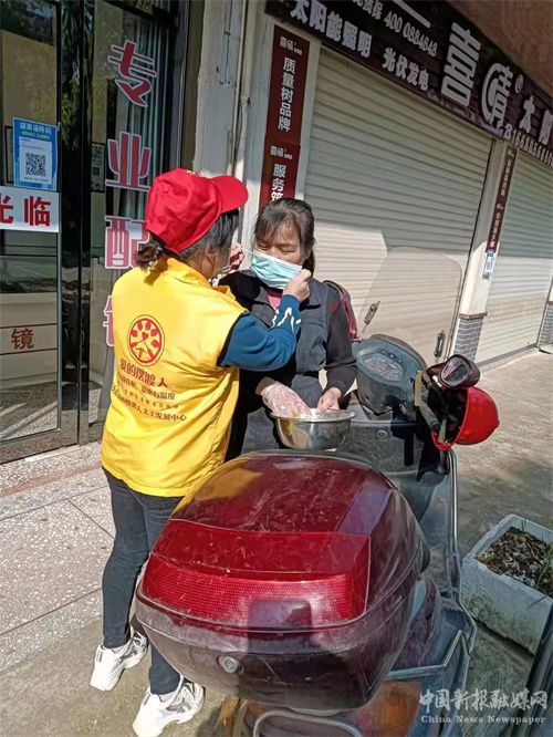 為了不斷增強廣大群眾的防疫意識,長沙縣愛的擺渡人義工發(fā)展中心果園鎮(zhèn)站站志愿者們在站長黃新芝帶領(lǐng)下走上楊泗廟街頭,開展勸導街上行人和沿街商鋪人員戴口罩志愿活動。在楊泗廟街道邊,遇上一位大姐沒戴口罩,果園鎮(zhèn)站文明創(chuàng)建組長宋麥群隨手拿出口罩,一邊幫她戴上口罩,一邊耐心的告訴她怎樣正確佩戴口罩和不戴口罩的危害性。大姐呵呵的笑著,不停的說“謝謝你們!謝謝你們!下次我一定記得戴口罩!”