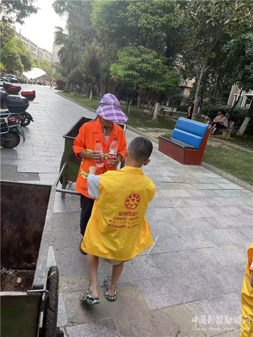 下午4:30,50多名學生在家長陪同和義工指導下聚集在楓樹小區(qū)東屯渡社區(qū)前坪?;顒娱_始前,負責人給小朋友們介紹了愛的擺渡人義工發(fā)展中心的服務宗旨,講解了這次活動的意義,并感謝各位家長的大力支持,對參加本次活動的愛心小朋友表示贊賞。緊接著,孩子們開始分頭行動,大家紛紛走到戶外給高溫下辛勞付出的快遞小哥、外賣騎手、交通警察、環(huán)衛(wèi)工人、建筑工人等戶外工作者們送上了愛心礦泉水。
