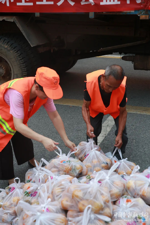 據(jù)悉,每年金甲梨園在梨子采摘后,都會(huì)開展以“夏天送清涼”關(guān)愛城市守護(hù)者行動(dòng)為主題的公益行動(dòng),為環(huán)衛(wèi)工人送去高溫下的一抹清涼。