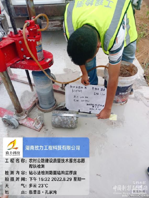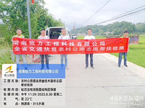 近日,湖南致力工程科技有限公司志愿幫扶檢測小組,冒著炎炎酷暑,奔赴常德臨澧縣、桃源縣開展2022年度農(nóng)村公路建設(shè)質(zhì)量檢測志愿幫扶工作,這是致力科技自2018年以來連續(xù)五年參加交通運輸部和湖南省交通運輸廳組織的志愿幫扶工作。