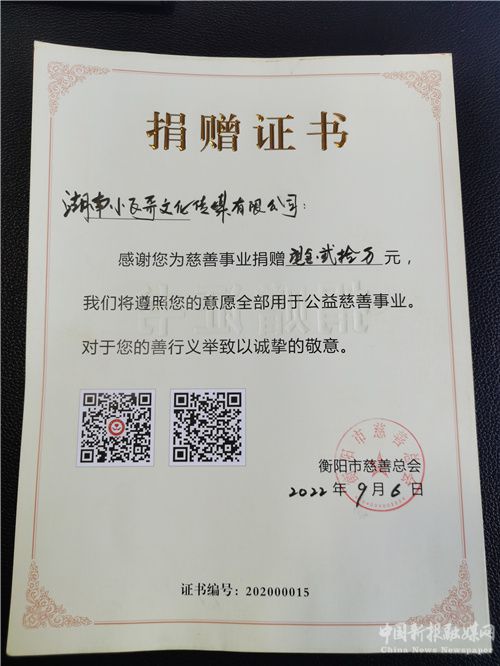 9月6日上午,在衡陽市互聯(lián)網(wǎng)行業(yè)黨委指導(dǎo)下,湖南小飛哥文化傳媒有限公司負責(zé)人來到市慈善總會,向四川瀘定地震災(zāi)區(qū)捐款20萬元。市慈善總會相關(guān)負責(zé)人表示,這是“9·5”瀘定地震發(fā)生后,我市慈善總會收到的第一筆定向捐款。