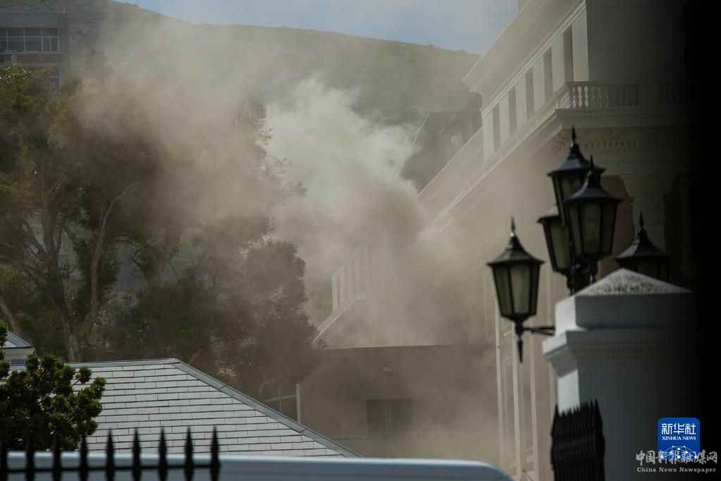 1月2日,南非開普敦的議會(huì)建筑冒起濃煙。